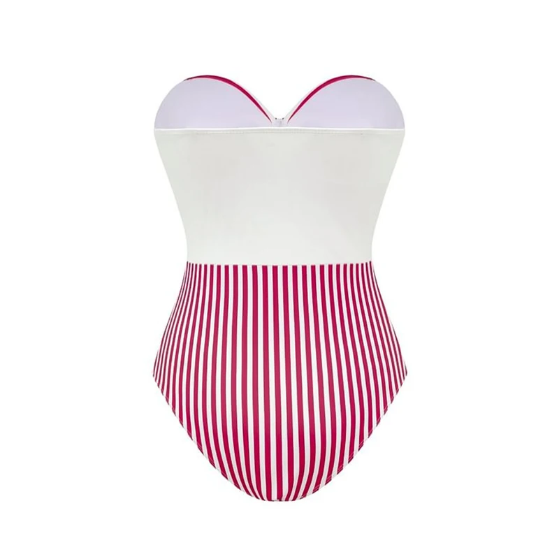 Women V-neck Bandeau Striped Print One Piece Swimsuit Sexy Swimwear Bathing Swimming Suit Female Summer Beachwear Bodysuit