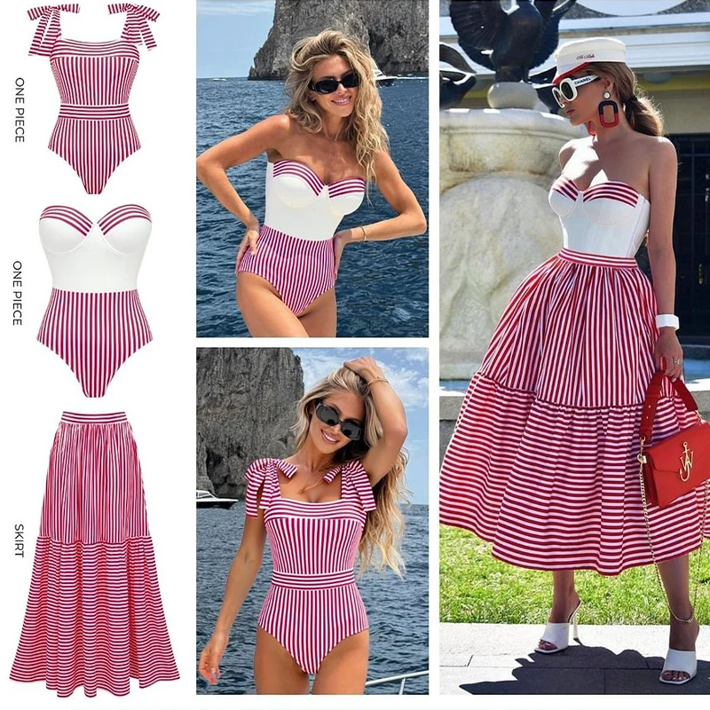 Neckline: Bandeau Details: None High-concerned chemical: None Craft of Weaving: Non-Woven Release Date: Summer 2024 Age: Middle Age Style: Beach Style Fit: True to Size Material: POLYESTER,Elastane Pattern Type: Striped With Pad: Yes Support Type: Wire Free Waist: Mid Waist Gender: Women Origin: Mainland China CN: Guangdong Item Type: Bikinis Set Type 1: Woman swimsuits Type 2: Women's bikinis Type 3: bikinis sets Type 4: Women's swimsuit Type 5: swimsuit women Type 6: swimsuit for women